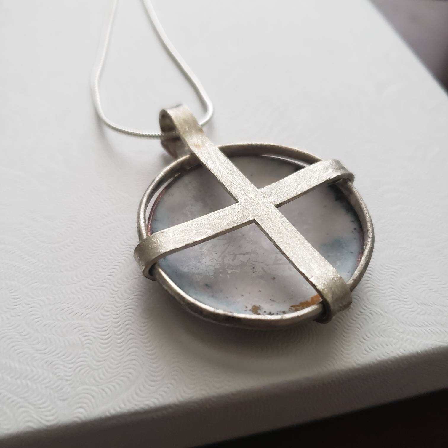 Care instructions: The enamel piece can be wiped with a soft cloth. The silver setting can be cleaned with a soft pad which is included.