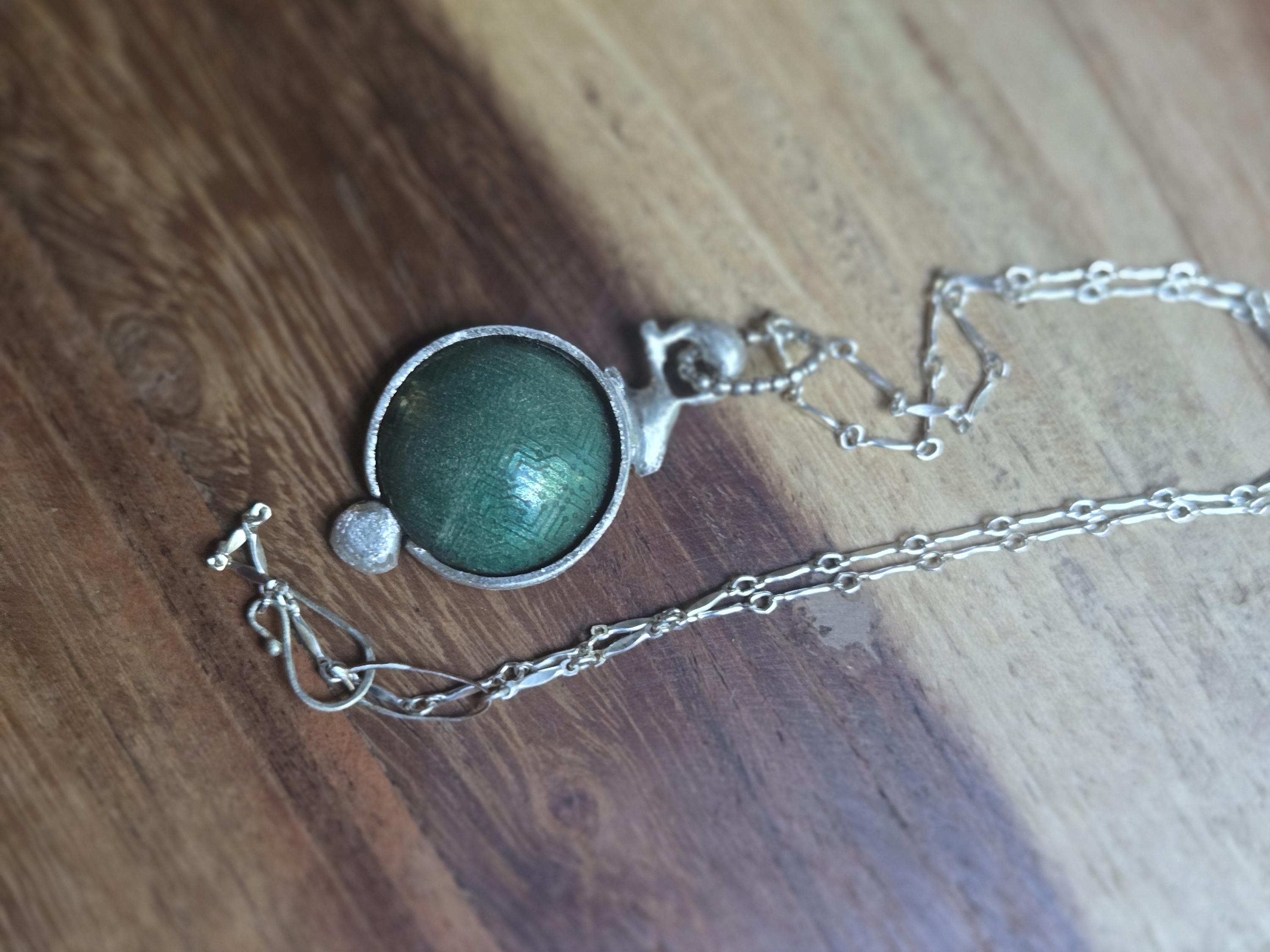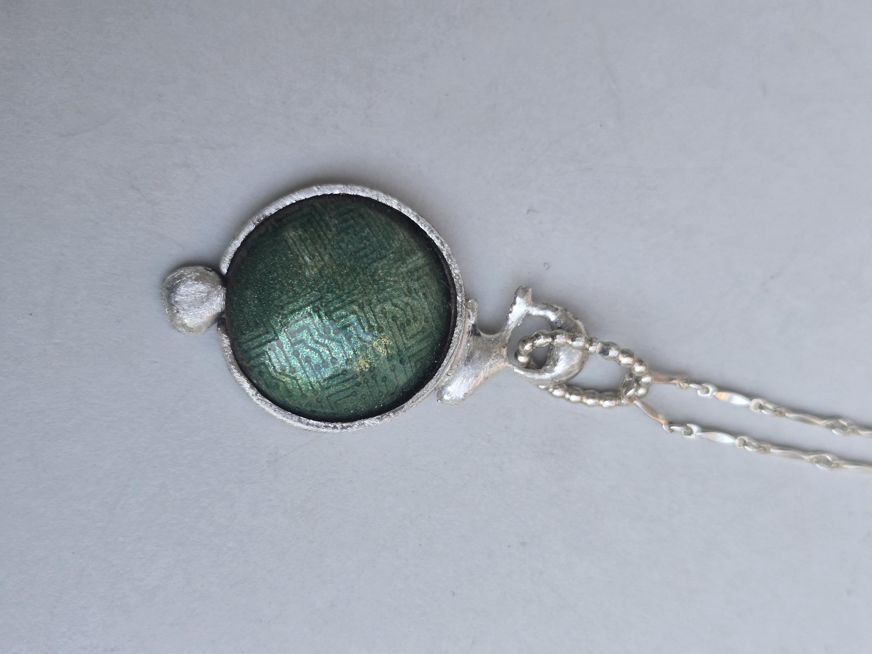 Zen Garden Vitreous Enamel Silver Silver with Fine Silver Accent Pendant Necklace