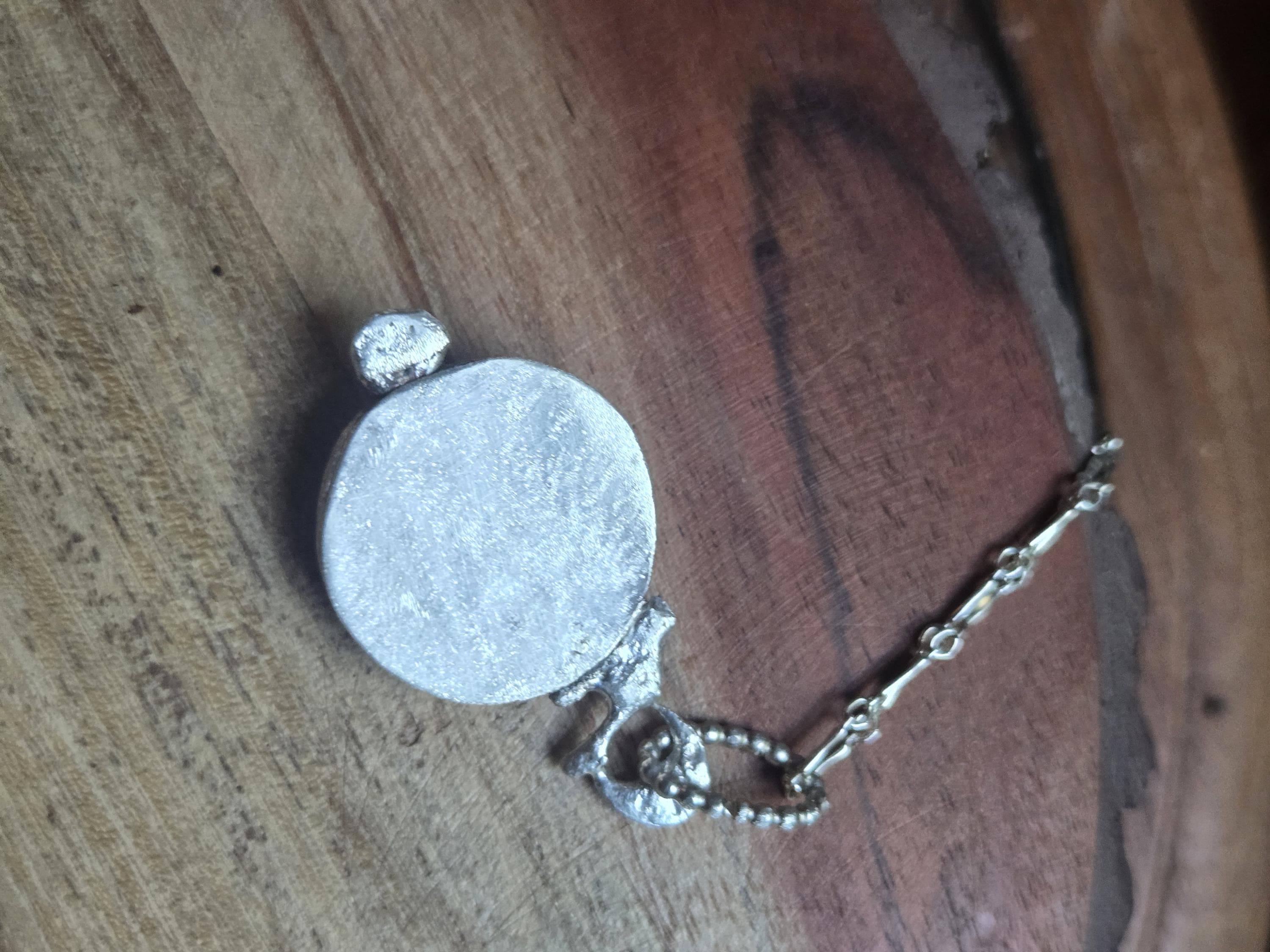 Care instructions: The enamel piece can be wiped with a soft cloth. The silver setting can be cleaned with a soft pad which is included.