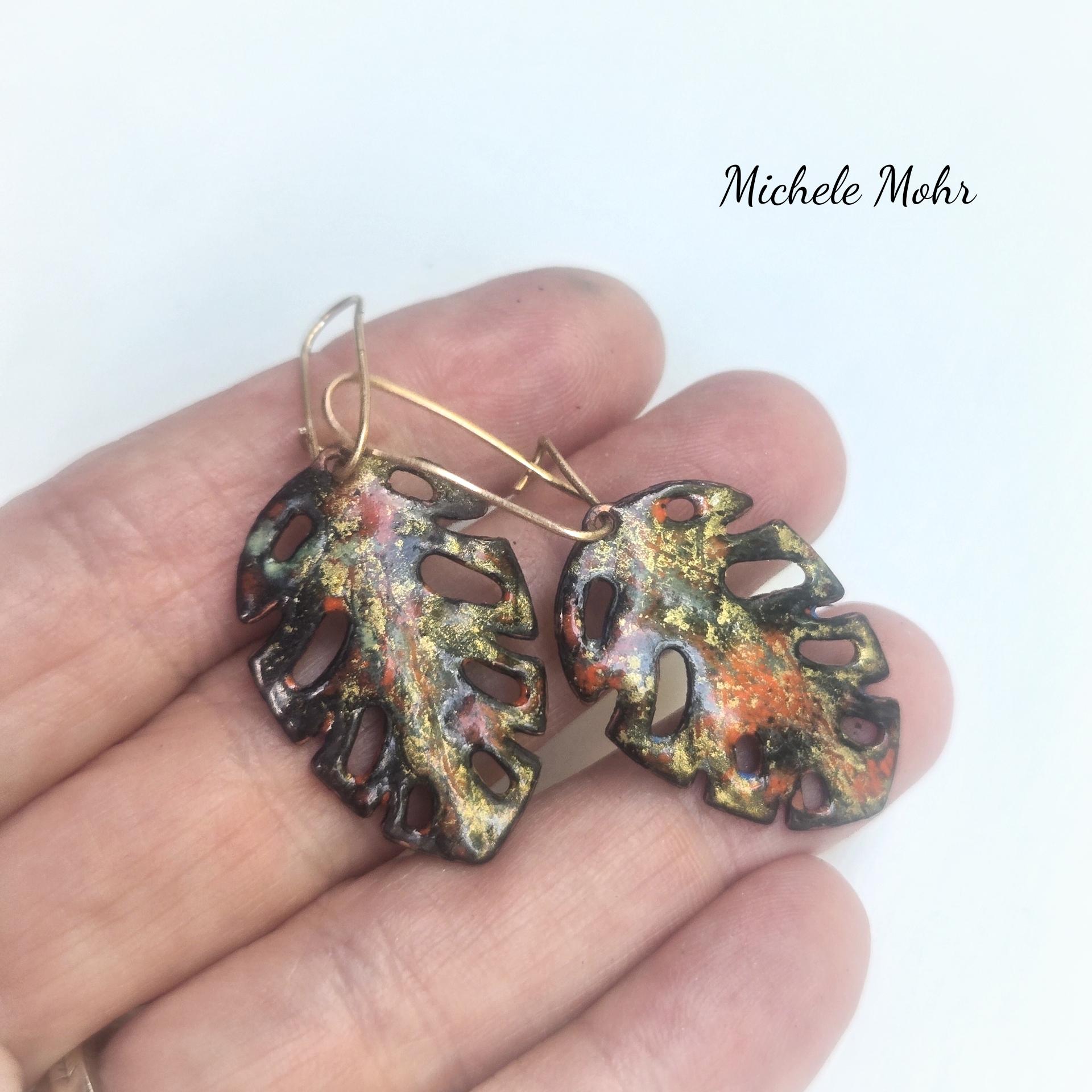 Autumn Leaf Enamel Earrings with Gold Filled Kidney Ear Wires