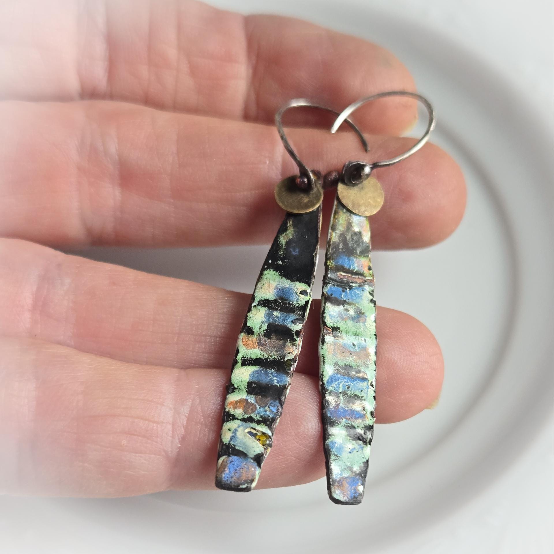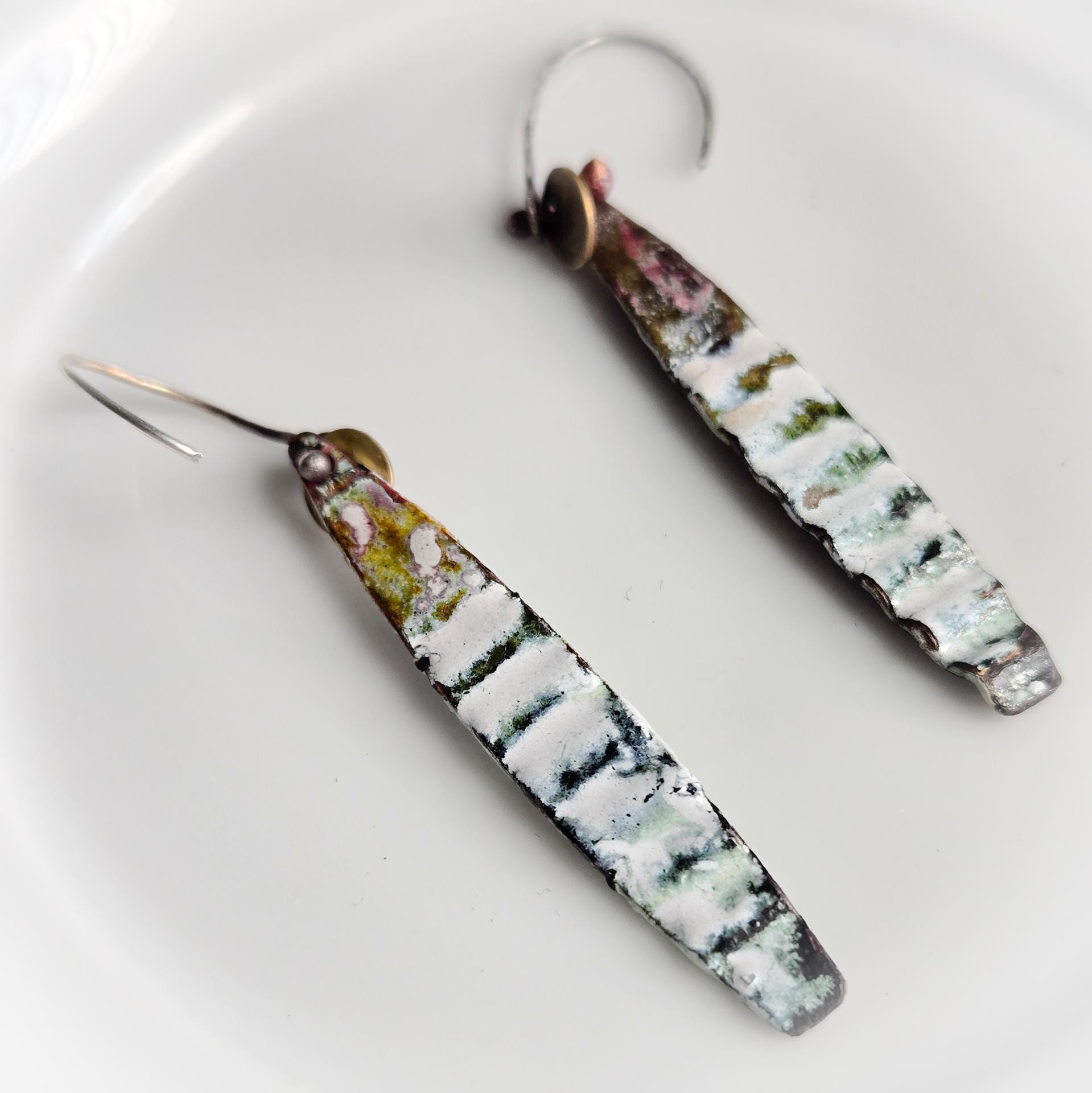 Urban Landscape Corrugated Riveted Vitreous Enamel and Sterling Siver Earrings